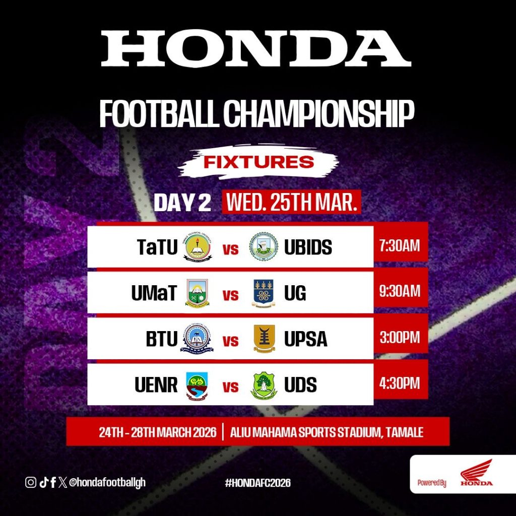 The championship, scheduled to run from Tuesday, 24th March to Sunday, 28th March 2026, will feature eight universities: University of Professional Studies, Accra (UPSA), Bolgatanga Technical University (BTU), Tamale Technical University (TaTU), University of Energy and Natural Resources (UENR), University of Ghana (UG), University of Development Studies (UDS), University of Mines and Technology (UMaT), and University Business and Integrated Development Studies (UBIDS). These institutions will battle it out at the Aliu Mahama Sports Stadium, all aiming to claim ultimate bragging rights and the grand prize of GH₵25,000.